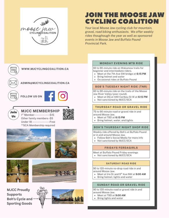 The Moose Jaw Cycling Coalition 2026 registration is now live. Please follow the link below to register. The registration will take you over to the SCA in order to register for their membership as well. All cycling clubs members must be members of the SCA for insurance and liability purposes.